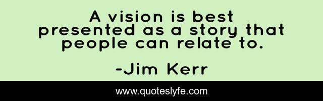 This page presents the quote "A vision is best presented as a story that people can relate to.". Author of this quote is Jim Kerr. This quote is about story, reliability, vision,.