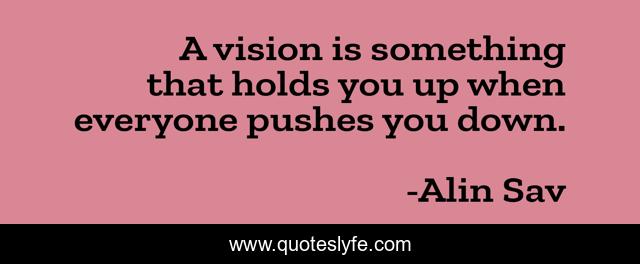 This page presents the quote "A vision is something that holds you up when everyone pushes you down.". Author of this quote is Alin Sav. This quote is about positive, confidence, motivational, optimistic,.