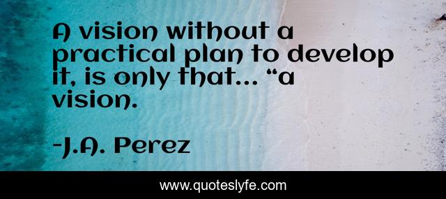 This page presents the quote "A vision without a practical plan to develop it, is only that… “a vision.". Author of this quote is J.A. Perez. This quote is about collaboration, visionary, ja-perez, vision,.
