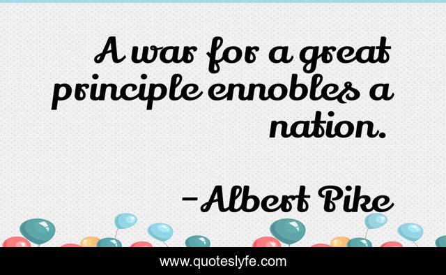 This page presents the quote "A war for a great principle ennobles a nation.". Author of this quote is Albert Pike. This quote is about politics, great, nation,.