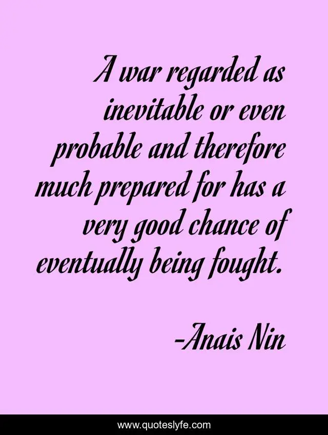 "Anais Nin Quotes." Quoteslyfe.com, 2025. Fri. 05 Dec. 2025. <https://www.quoteslyfe.com/quote/A-war-regarded-as-inevitable-or-even-278500>.