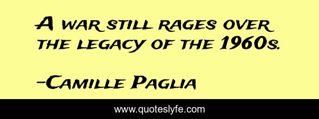 This page presents the quote "A war still rages over the legacy of the 1960s.". Author of this quote is Camille Paglia. This quote is about still, legacy, war,.