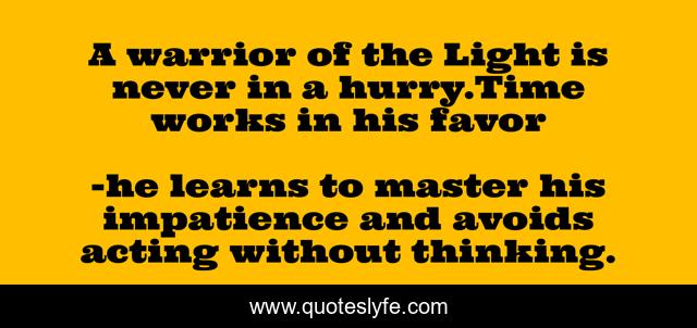 "he learns to master his impatience and avoids acting without thinking. Quotes." Quoteslyfe.com, 2025. Fri. 05 Dec. 2025. <https://www.quoteslyfe.com/quote/A-warrior-of-the-Light-is-never-117178>.