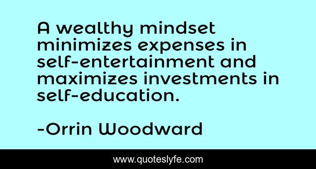 This page presents the quote "A wealthy mindset minimizes expenses in self-entertainment and maximizes investments in self-education.". Author of this quote is Orrin Woodward. This quote is about expenses, investment, finances, wealth,.