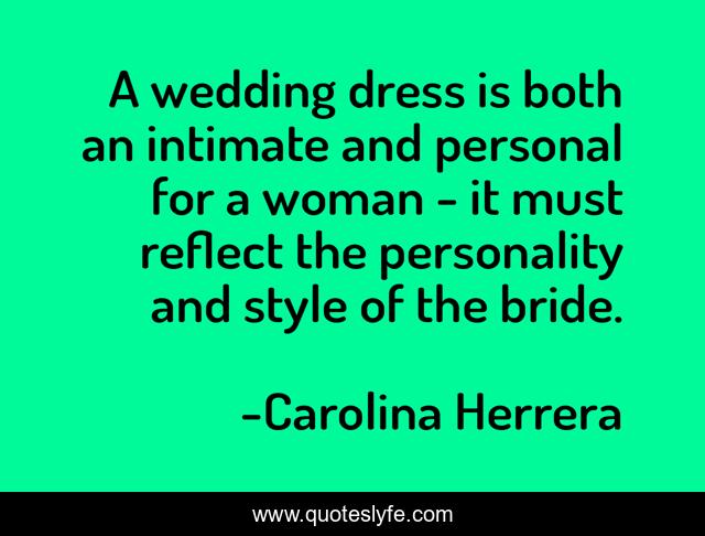 This page presents the quote "A wedding dress is both an intimate and personal for a woman - it must reflect the personality and style of the bride.". Author of this quote is Carolina Herrera. This quote is about woman, dress, personality,.