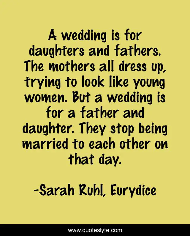 "Sarah Ruhl, Eurydice Quotes." Quoteslyfe.com, 2025. Tue. 09 Dec. 2025. <https://www.quoteslyfe.com/quote/A-wedding-is-for-daughters-and-fathers-76536>.
