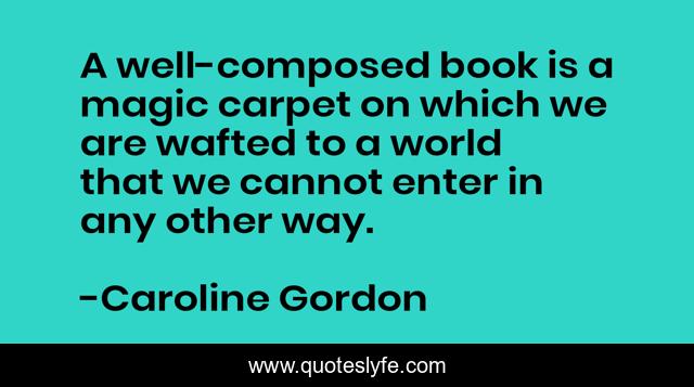 This page presents the quote "A well-composed book is a magic carpet on which we are wafted to a world that we cannot enter in any other way.". Author of this quote is Caroline Gordon. This quote is about imagination, books, writing,.