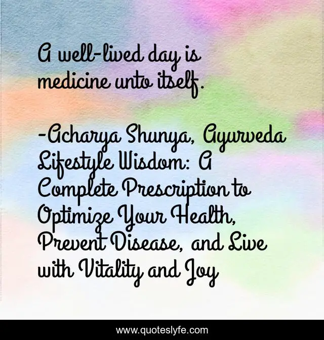 "Acharya Shunya, Ayurveda Lifestyle Wisdom: A Complete Prescription to Optimize Your Health, Prevent Disease, and Live with Vitality and Joy Quotes." Quoteslyfe.com, 2025. Mon. 08 Dec. 2025. <https://www.quoteslyfe.com/quote/A-well-lived-day-is-medicine-unto-176876>.
