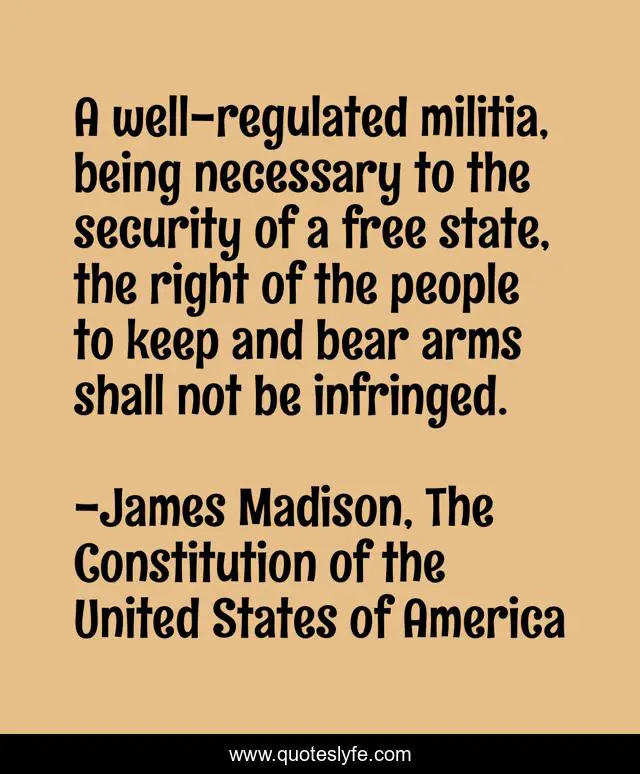 "James Madison, The Constitution of the United States of America Quotes." Quoteslyfe.com, 2025. Mon. 08 Dec. 2025. <https://www.quoteslyfe.com/quote/A-well-regulated-militia-being-necessary-to-54452>.