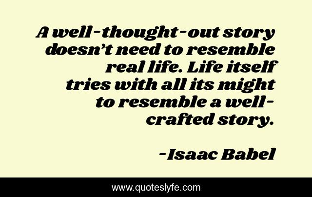 This page presents the quote "A well-thought-out story doesn’t need to resemble real life. Life itself tries with all its might to resemble a well-crafted story.". Author of this quote is Isaac Babel. This quote is about fiction, story, reality, on-fiction, narrative,.
