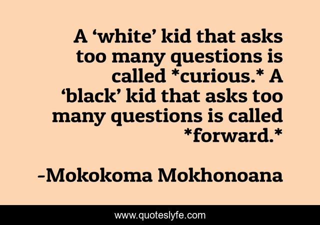 "Mokokoma Mokhonoana Quotes." Quoteslyfe.com, 2025. Sat. 06 Dec. 2025. <https://www.quoteslyfe.com/quote/A-white-kid-that-asks-too-many-100230>.