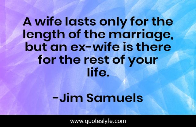 This page presents the quote "A wife lasts only for the length of the marriage, but an ex-wife is there for the rest of your life.". Author of this quote is Jim Samuels. This quote is about life, rest, wife,.