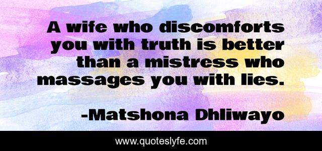"Matshona Dhliwayo Quotes." Quoteslyfe.com, 2025. Tue. 09 Dec. 2025. <https://www.quoteslyfe.com/quote/A-wife-who-discomforts-you-with-truth-98068>.