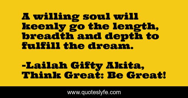 "Lailah Gifty Akita, Think Great: Be Great! Quotes." Quoteslyfe.com, 2025. Mon. 08 Dec. 2025. <https://www.quoteslyfe.com/quote/A-willing-soul-will-keenly-go-the-34596>.