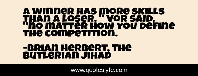 This page presents the quote "A winner has more skills than a loser, " Vor said, "no matter how you define the competition.". Author of this quote is Brian Herbert, The Butlerian Jihad. This quote is about vorian-atreides, competition, winning, winners, losers, losing,.