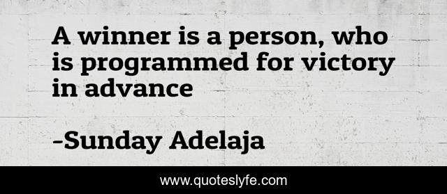 This page presents the quote "A winner is a person, who is programmed for victory in advance". Author of this quote is Sunday Adelaja. This quote is about advance, winner, programmed, victory, person,.