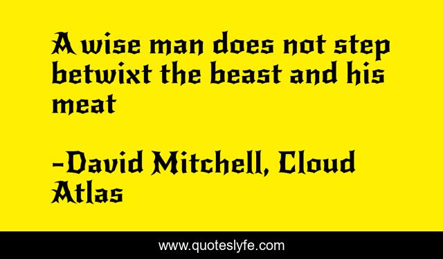 This page presents the quote "A wise man does not step betwixt the beast and his meat". Author of this quote is David Mitchell, Cloud Atlas. .