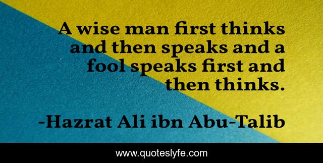 This page presents the quote "A wise man first thinks and then speaks and a fool speaks first and then thinks.". Author of this quote is Hazrat Ali ibn Abu-Talib. This quote is about enthusiasm, inspirational,.