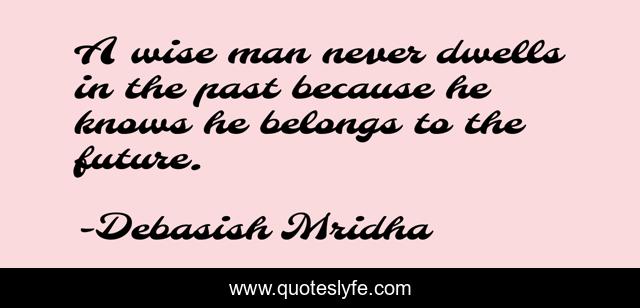 This page presents the quote "A wise man never dwells in the past because he knows he belongs to the future.". Author of this quote is Debasish Mridha. This quote is about never-dwell-in-the-past, philosophy, debasish-mridha, past, quotes, future, inspirational, enthusiasm, wise-man,.