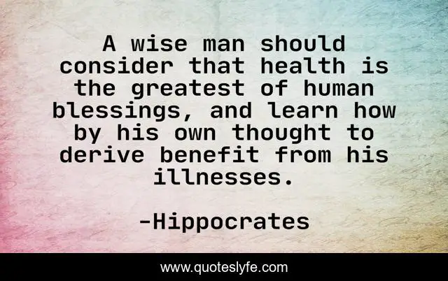 This page presents the quote "A wise man should consider that health is the greatest of human blessings, and learn how by his own thought to derive benefit from his illnesses.". Author of this quote is Hippocrates. This quote is about blessings, wise, man,.
