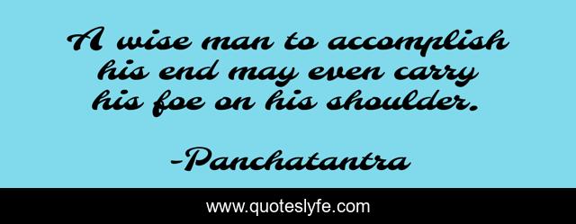 This page presents the quote "A wise man to accomplish his end may even carry his foe on his shoulder.". Author of this quote is Panchatantra. .