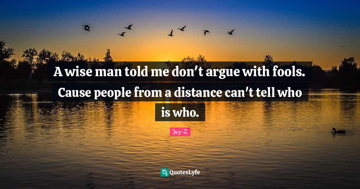 A wise man told me don't argue with fools. Cause people from a distance can't tell who is who.