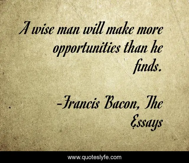 "Francis Bacon, The Essays Quotes." Quoteslyfe.com, 2025. Mon. 08 Dec. 2025. <https://www.quoteslyfe.com/quote/A-wise-man-will-make-more-opportunities-12271>.