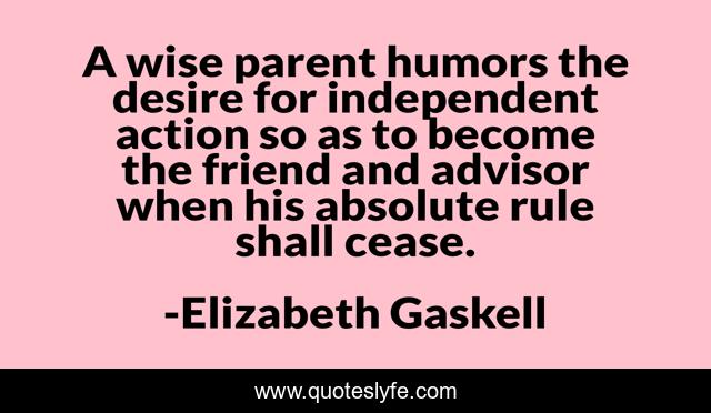 This page presents the quote "A wise parent humors the desire for independent action so as to become the friend and advisor when his absolute rule shall cease.". Author of this quote is Elizabeth Gaskell. This quote is about helping, people,.