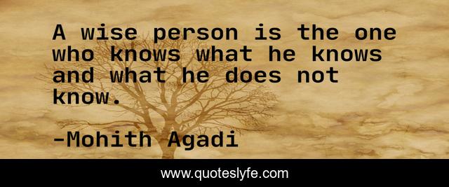 This page presents the quote "A wise person is the one who knows what he knows and what he does not know.". Author of this quote is Mohith Agadi. This quote is about listen, motivating, wise-person, inspirational, quote, motivate, knowledge, wisdom, quotes,.