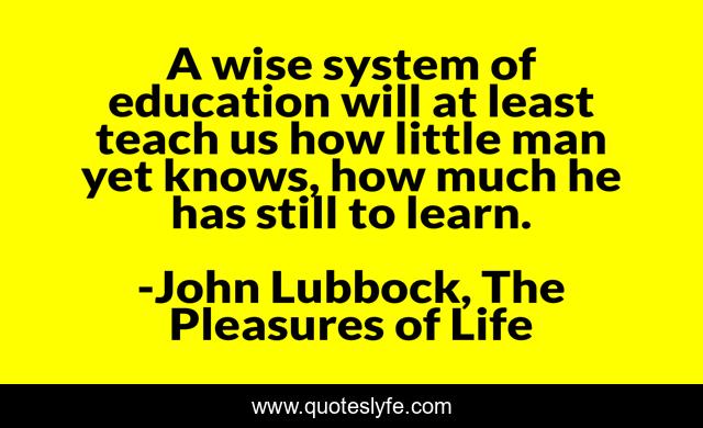 This page presents the quote "A wise system of education will at least teach us how little man yet knows, how much he has still to learn.". Author of this quote is John Lubbock, The Pleasures of Life. This quote is about wise, honesty, science, wisdom, learning, teach, education, knowledge,.