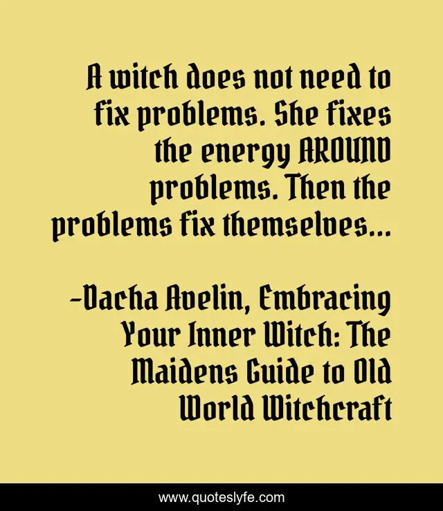 "Dacha Avelin, Embracing Your Inner Witch: The Maidens Guide to Old World Witchcraft Quotes." Quoteslyfe.com, 2025. Fri. 05 Dec. 2025. <https://www.quoteslyfe.com/quote/A-witch-does-not-need-to-fix-216390>.