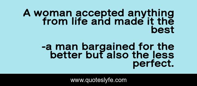 "a man bargained for the better but also the less perfect. Quotes." Quoteslyfe.com, 2025. Fri. 05 Dec. 2025. <https://www.quoteslyfe.com/quote/A-woman-accepted-anything-from-life-and-162581>.
