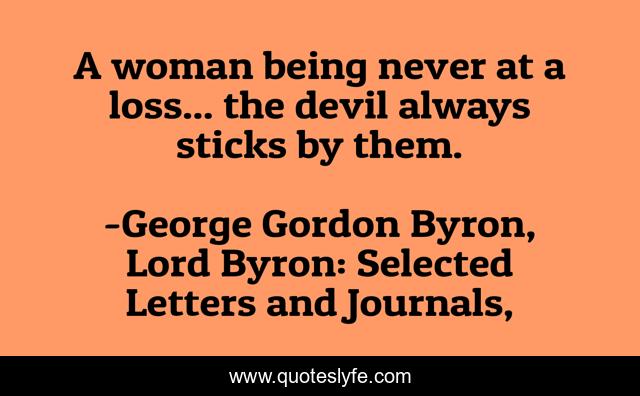 This page presents the quote "A woman being never at a loss... the devil always sticks by them.". Author of this quote is George Gordon Byron, Lord Byron: Selected Letters and Journals,. This quote is about misattributed-edgar-allan-poe, devil, woman, lord-byron,.