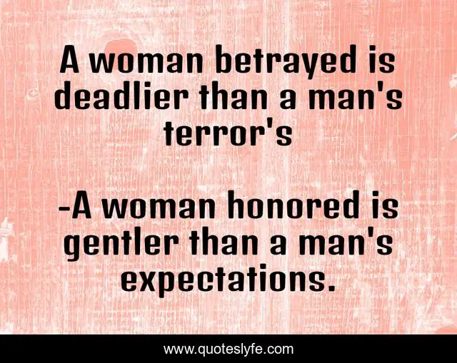 "A woman honored is gentler than a man's expectations. Quotes." Quoteslyfe.com, 2025. Sat. 06 Dec. 2025. <https://www.quoteslyfe.com/quote/A-woman-betrayed-is-deadlier-than-a-225251>.