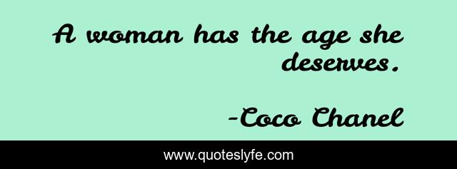 This page presents the quote "A woman has the age she deserves.". Author of this quote is Coco Chanel. This quote is about deserves, woman, she,.