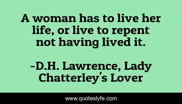 This page presents the quote "A woman has to live her life, or live to repent not having lived it.". Author of this quote is D.H. Lawrence, Lady Chatterley's Lover. This quote is about living, life, philosophy, women,.