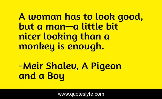 "Meir Shalev, A Pigeon and a Boy Quotes." Quoteslyfe.com, 2025. Mon. 08 Dec. 2025. <https://www.quoteslyfe.com/quote/A-woman-has-to-look-good-but-127488>.