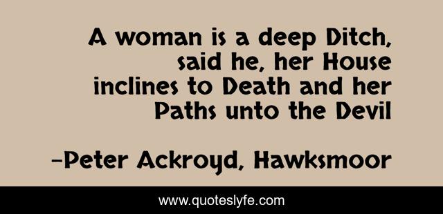 This page presents the quote "A woman is a deep Ditch, said he, her House inclines to Death and her Paths unto the Devil". Author of this quote is Peter Ackroyd, Hawksmoor. This quote is about death, woman, devil, women,.