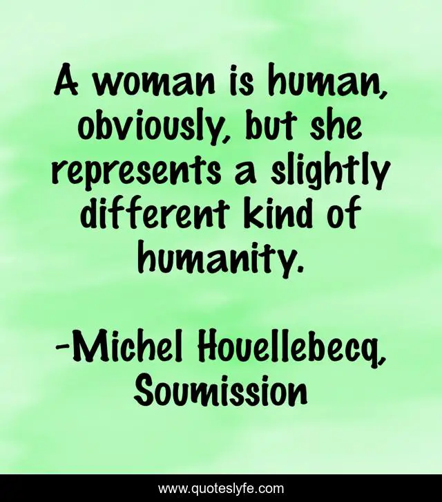 "Michel Houellebecq, Soumission Quotes." Quoteslyfe.com, 2025. Sun. 07 Dec. 2025. <https://www.quoteslyfe.com/quote/A-woman-is-human-obviously-but-she-177302>.