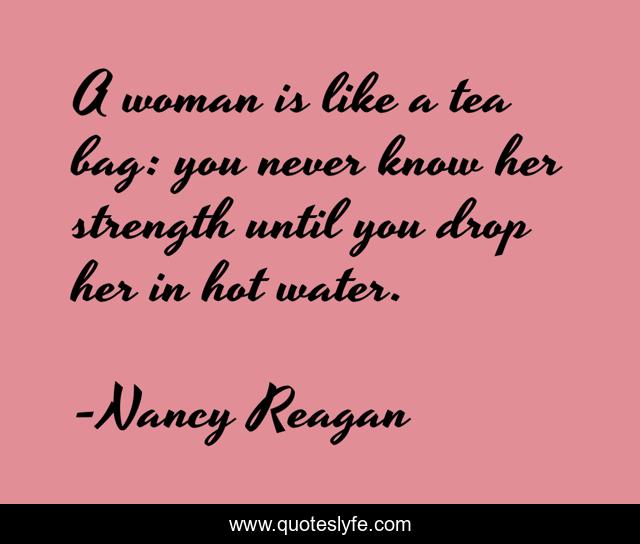 This page presents the quote "A woman is like a tea bag: you never know her strength until you drop her in hot water.". Author of this quote is Nancy Reagan. .