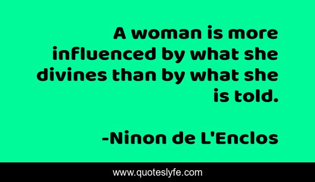 This page presents the quote "A woman is more influenced by what she divines than by what she is told.". Author of this quote is Ninon de L'Enclos. .