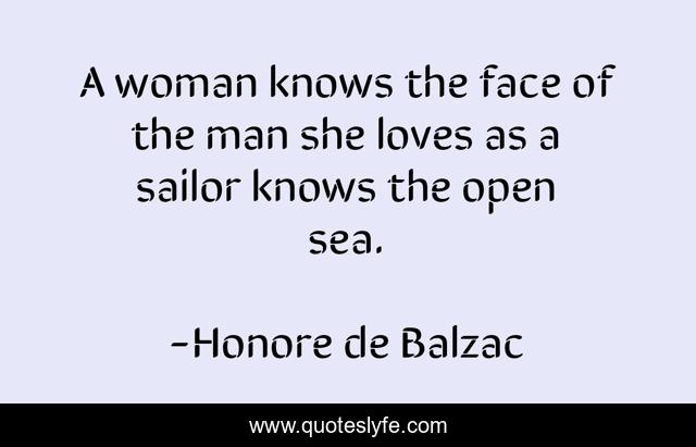 This page presents the quote "A woman knows the face of the man she loves as a sailor knows the open sea.". Author of this quote is Honore de Balzac. This quote is about woman, sea, man,.