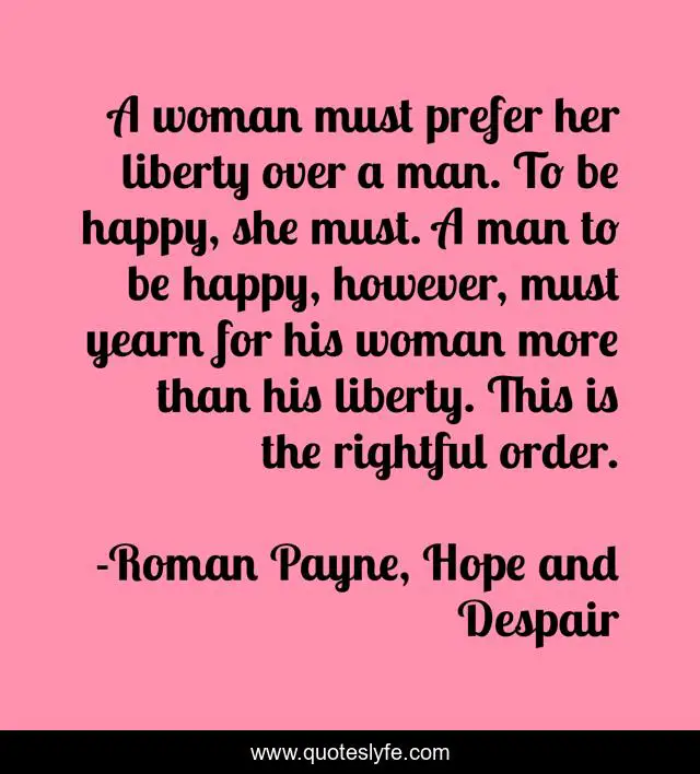 "Roman Payne, Hope and Despair Quotes." Quoteslyfe.com, 2025. Tue. 09 Dec. 2025. <https://www.quoteslyfe.com/quote/A-woman-must-prefer-her-liberty-over-17374>.
