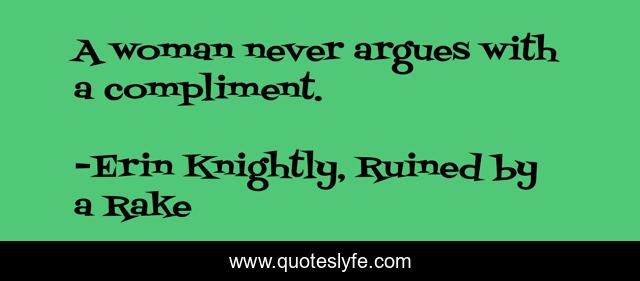 "Erin Knightly, Ruined by a Rake Quotes." Quoteslyfe.com, 2025. Sun. 07 Dec. 2025. <https://www.quoteslyfe.com/quote/A-woman-never-argues-with-a-compliment-177422>.