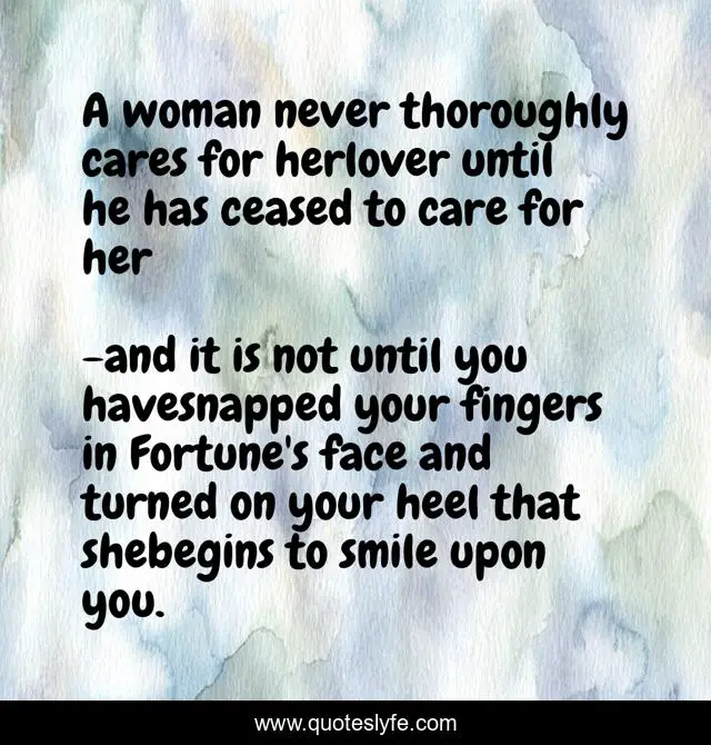 "and it is not until you havesnapped your fingers in Fortune's face and turned on your heel that shebegins to smile upon you. Quotes." Quoteslyfe.com, 2025. Sun. 07 Dec. 2025. <https://www.quoteslyfe.com/quote/A-woman-never-thoroughly-cares-for-herlover-177349>.