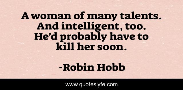 This page presents the quote "A woman of many talents. And intelligent, too. He'd probably have to kill her soon.". Author of this quote is Robin Hobb. .