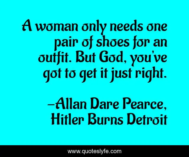 "Allan Dare Pearce, Hitler Burns Detroit Quotes." Quoteslyfe.com, 2025. Sat. 06 Dec. 2025. <https://www.quoteslyfe.com/quote/A-woman-only-needs-one-pair-of-234476>.