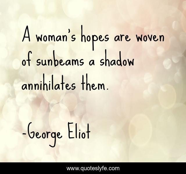 This page presents the quote "A woman's hopes are woven of sunbeams a shadow annihilates them.". Author of this quote is George Eliot. .