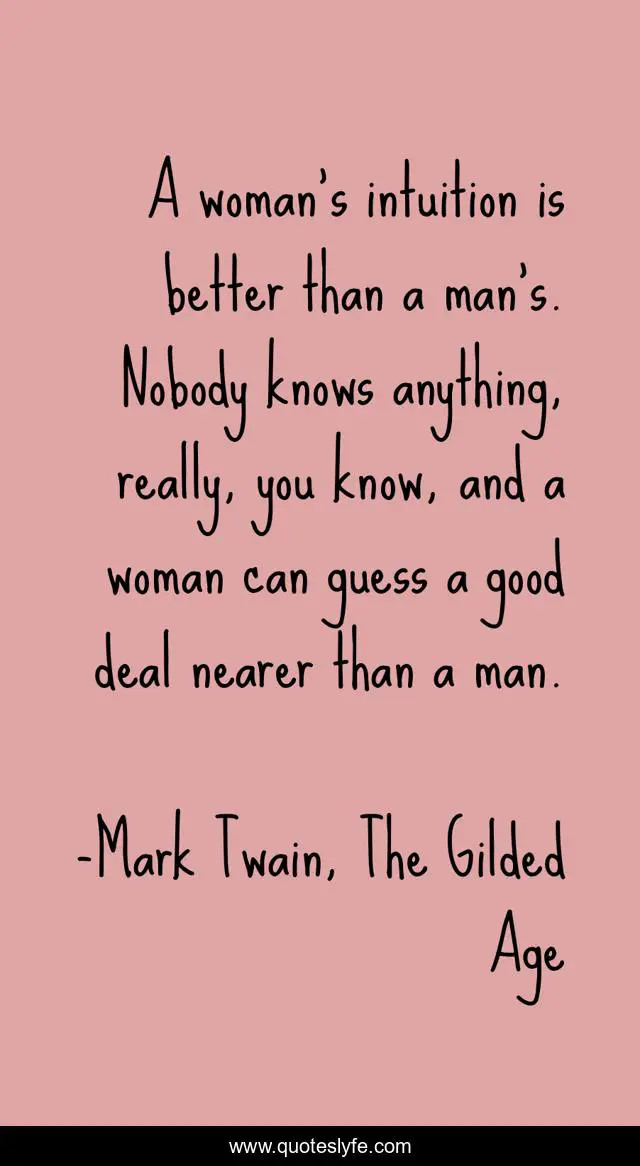 "Mark Twain, The Gilded Age Quotes." Quoteslyfe.com, 2025. Mon. 08 Dec. 2025. <https://www.quoteslyfe.com/quote/A-woman-s-intuition-is-better-than-162633>.