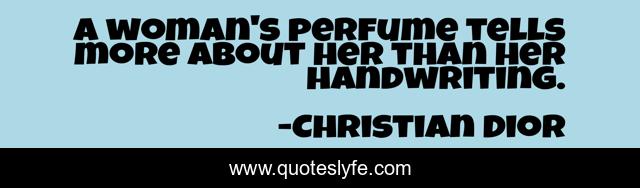 This page presents the quote "A woman's perfume tells more about her than her handwriting.". Author of this quote is Christian Dior. This quote is about handwriting, fashion, perfume, women,.